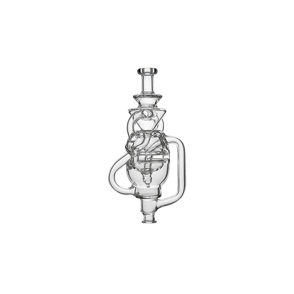 The CALIBEAR FABCYCLER PIVOT MOUTHPIECE combines the intricate structure of a Fab Egg with the precision of a recycler system, achieving both aesthetic balance and peak performance. Its multi-path water circulation delivers ultra-smooth hits, efficiently cooling and purifying vapor for a clean and flavorful experience. Handcrafted from premium borosilicate glass, every curve and connection showcases Calibear’s dedication to craftsmanship and innovation. Designed for perfect compatibility with the PIVOT, it enhances function while elevating every session to a new level of artistry.